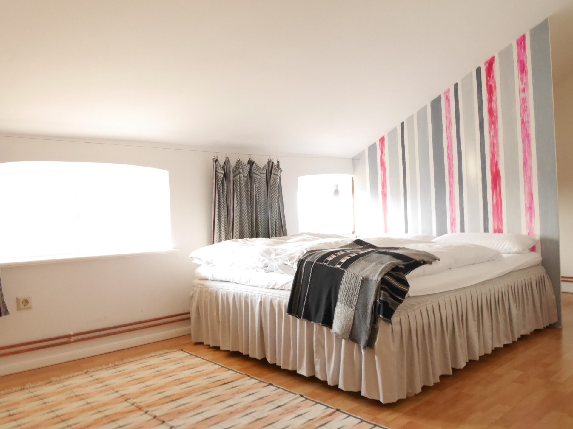 90 m² Apartment, 3 Zimmer mit Wohnküche, 4 Personen, 1 Doppelbett, 2 Einzelbetten, Kaminofen, Parkettboden, große Fenster mit weitem Ausblick, Fernseher und WLAN, Kunst