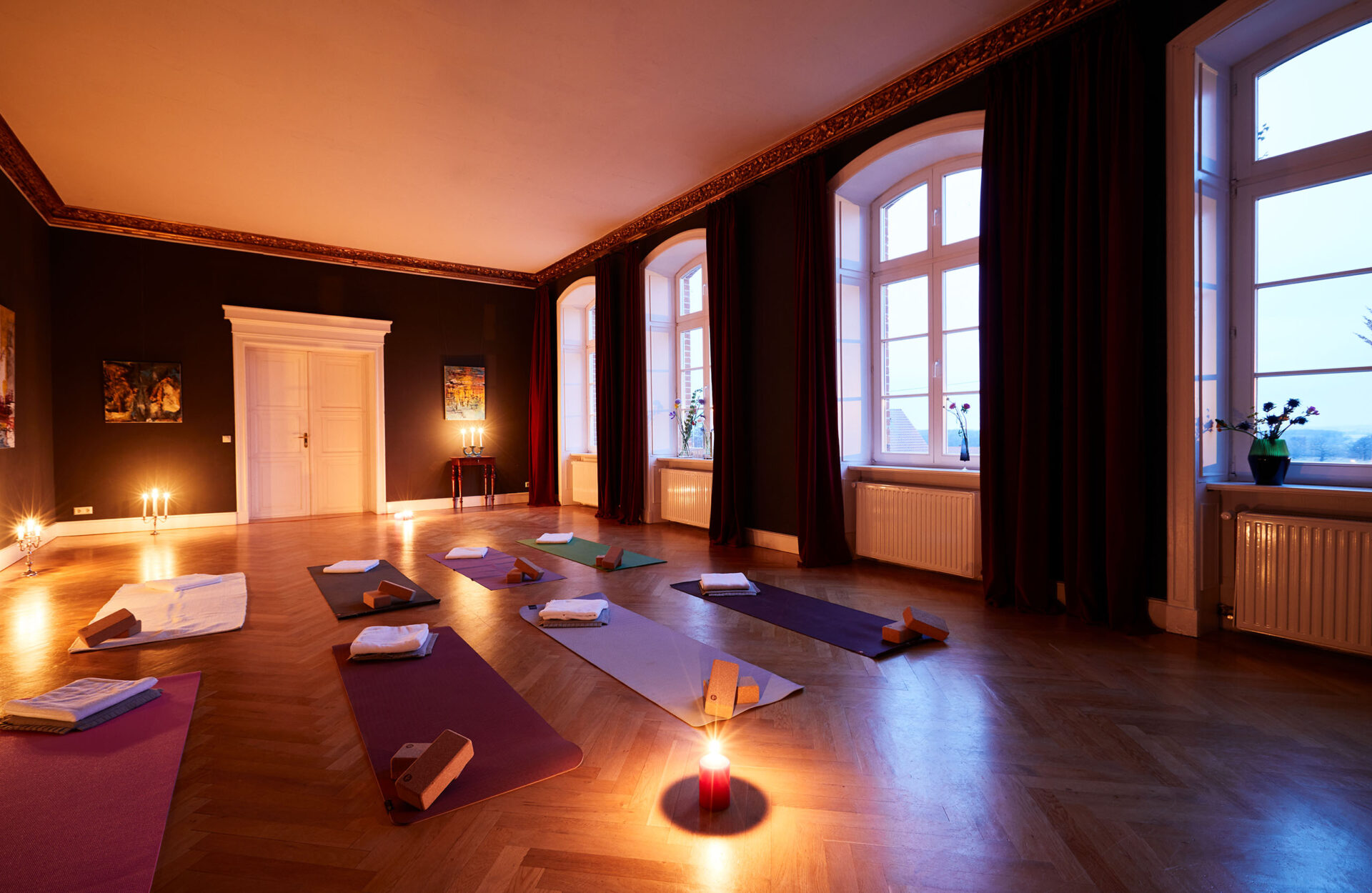 Mittwoch früh (8.45 Uhr): Hatha Yoga Klasse kraftvoll und stärkend, anschließend Frühstücksbuffet – im eigenen Apartment oder gemeinsam im Entrée des Gutshauses Mittags: nährendes gemeinsames Mittagessen Nachmittag: Workshop (Yoga als integrale Technik jenseits der körperlichen Praxis), Raum für dich in der weiten und stillen Natur und im Gutshaus vor Kamin oder in den gemütlichen Apartments Abend: Hatha Yoga sanft und Yin Yoga, anschließend Abendessen gemeinsam oder nach Wunsch in Stille
